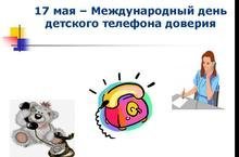 17 мая в гимназии состоялись единые классные часы в рамках Международного дня детского телефона доверия.Главная цель мероприятия:рассказать об истории возникновения Телефона доверия как вида психологической помощи, об особенностях и принципах работы службы; прокомментировать ситуации, когда дети могут обращаться на Телефон доверия. -