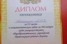 Поздравляем сборную команду гимназии, занявшую 3 место в Первенстве по плаванию и сборную команду гимназии, занявшую 3 место в легкоатлетическом забеге на 400 метров (педагоги Галкин В.Ю., Хадарин С.М., Галкина Е.В., Долгих В.Ю.)среди учащихся образовательных учреждений Приволжского района г.Казани! Молодцы!