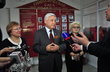 17 ноября музеи нашей гимназии посетили почётные гости -Фарид Хайруллович Мухаметшин, председатель Государственного Совета, Федорова Тамара Трофимовна, начальник Управления общего образования МОиН РТ, Хадиуллин Ильсур Гараевич, начальник Управления образования исполнительного комитета города Казани.В Музее В.П. Аксенова учитель русского языка и литературы Романова Людмила Юрьевна рассказала о направлениях работы музея, об истории его создания. Гимназисты Павлов Марат, Тукмакова Алина, Ганеева Инесса, Макаров Никита, Гафиятова Камилла, Туфетуллов Тимур провели экскурсию «Как жаль, что вас не было с нами» о жизни и творчестве Василия Павловича на русском, татарском, немецком и английском языках. Творчество В.Аксенова похоже на танец - местами отрывистый, быстрый, неровный, но всегда гармоничный и честный. И так же Шишляев Никита, ученик 7 класса, выразительно читал отрывок из повести писателя. Он искал свой билет, пробитый звездами. Билет в будущее. Фарид Хайруллович дал высокую оценку традиционным конкурсам «Династии России» и «Звездный билет», инициатором которых была директор гимназии Татьяна Сергеевна Борер. А наш музей пополнился новым экспонатом. Фарид Хайруллович подарил шариковую ручку как знак одобрения работы гимназии, Совета музея В.Аксенова и творчества наших гимназистов.Так же высокие гости посетили музей гимназии «Астрономия и история космонавтики».В музее собраны уникальные экспонаты из Мемориального музея космонавтики им. Циолковского г.Москвы, вымпел, побывавший в космосе на МКС, книги и фотографии с автографами космонавтов Г.М.Гречко, Ю.М.Лазуткина, В.Г.Довгань, С.Н.Ревина, А.В.Калери, К.В.Крикалева и др., фотографии места «Гагаринского старта», домика Гагарина, - камни и костыль из рельсов, по которым везли ракету «Восток» на космодроме Байконур.В музее представлены научные работы учащихся, в частности выпускника 2013 года Галиуллина Ильхама, который совершил прорыв в астрономии – открыл двойную звезду с переменным блеском в созвездии Кассиопея. Ильхам представлял Россию на международном смотре научного и инженерного творчества школьников в городе Феникс штат Аризона США с научной работой «Поиск переменных в окрестностях звезды V523 Cas», научная работа выпускника 2013 года Ускова Григория «Определение большой полуоси спутника Юпитера Ганимед», в настоящее время Галиуллин И. и Усков Г. учатся в К(П)ФУ в Институте физики на кафедре астрономии, видеофильм «Наша солнечная система» ученика 8 Б класса Зайцева Никиты, научная работа «Метеор и метеорные потоки» ученика 10Б класса Гиззатуллина Рузаля , научная работа «Нейтронные звезды» ученика 8А класса Никонорова Игоря, научная работа «Космос служит людям» ученицы 10А класса Хайруллиной Дианы и др. Учениками гимназии изготовлен в натуральную величину макет Искусственного спутника земли.У входа в музей «Прикосновение к судьбе» гостей ожидало погружение в военную эпоху. Несколько пар учащихся станцевали зажигательную Рио-Риту. В музее почетных гостей встретила агитбригада музея с литературно-музыкальной композицией «Мы вернемся письмами с дороги…». Лирическая татарская музыка, которую играл на аккордеоне Туфетулов Тимур, песня под гитару возле костра, у которого грели замерзшие руки девчата в военной форме, разговор отца с дочерью сквозь военное время, ни