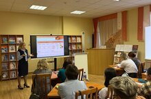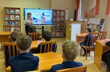 Руководитель Библиотечного центра М. Ш. Шакирова познакомила ребят с тематической выставкой книг и презентацией по истории праздника.
