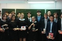 Рафис Тимирханович Бурганов торжественно вручил серебряные медали за отличие в поисковом движении Республики Татарстан учащимся 10 классов: Нуруллиной Камилле, Галимардановой Аделе, Новенькову Михаилу.