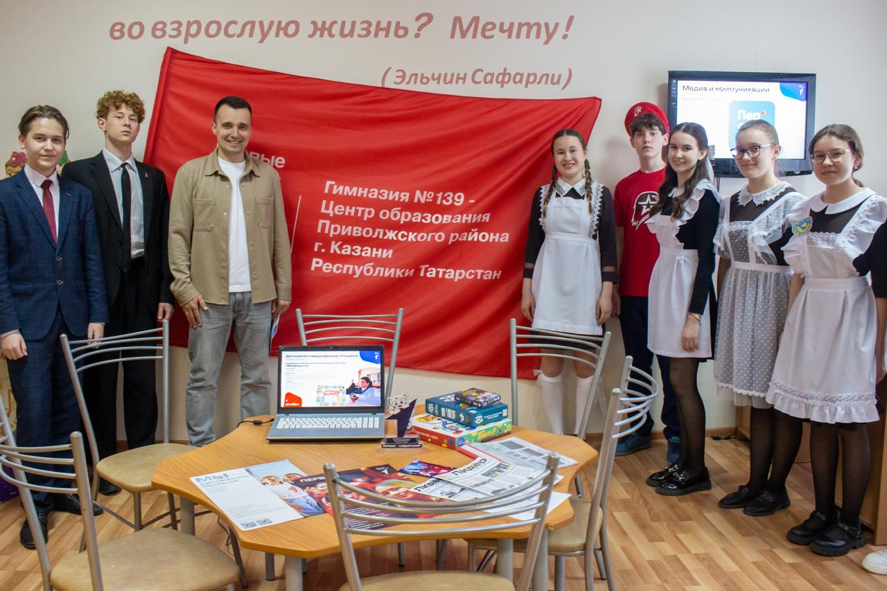22 апреля в МАОУ «Гимназия №139 – Центр образования» активисты «Движения Первых» за круглым столом встретились с Помощником Раиса РТ, председателем регионального отделения общероссийского общественно-государственного движения детей и молодёжи «Движение Первых» Сулеймановым Тимуром Джавдетовичем.