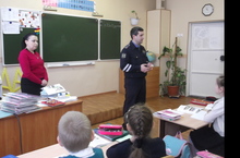 Сегодня в школе прошла встреча с инспектором по пропаганде отделения по Приволжскому району ОГИБДД Управления МВД России по г.Казани страшим лейтенантом полиции Р.И.Тимомеевым. Рамиль Идрисович выступил перед учащимися начального и среднего звена с профилактической беседой "Правила безопасного поведения на дороге". Главная цель встречи - это предупреждение дорожно-транспортных происшествий с участием детей.