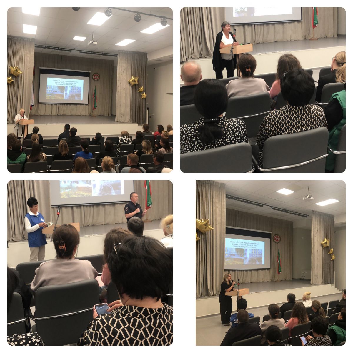 11 сентября состоялось первое общешкольное родительское собрание, которое было посвящено обсуждению организационных вопросов, планов на год, вопросов безопасности, питания и воспитательной работы. В собрании приняли участие: Гостев Михаил Сергеевич – инспектор по пропаганде ПДД Автоинспекции по г. Казани. Зарипова Наталья Александровна старший инспектор ОПДН ОП№9 «Сафиуллина» УМВД России по г. Казани майор полиции. Хуснутдинова Альфия Ахатовна -школьный врач .