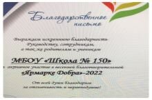 Благотворительный фонд "Альпари" выражает искреннюю благодарность руководству, сотрудникам, родителям и учащимся МБОУ "Школа №150" за активное участие в весенней благотворительной "Ярмарке Добра - 2022". От всей души благодарим за отзывчивость и неравнодушие!