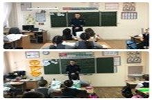В целях профилактики и предупреждения дорожно-транспортных происшествий в в нашей школе состоялась встреча учащихся начальных классов с инспектором по пропаганде безопасности дорожного движения ГИБДД Сафиным Р.И. Он в доступной форме рассказал ребятам, как вести себя на проезжей части, как нам в этом помогают дорожные знаки и светофоры, какие ситуации могут происходить на дорогах по невнимательности и безответственности не только пешеходов, но и водителей.
