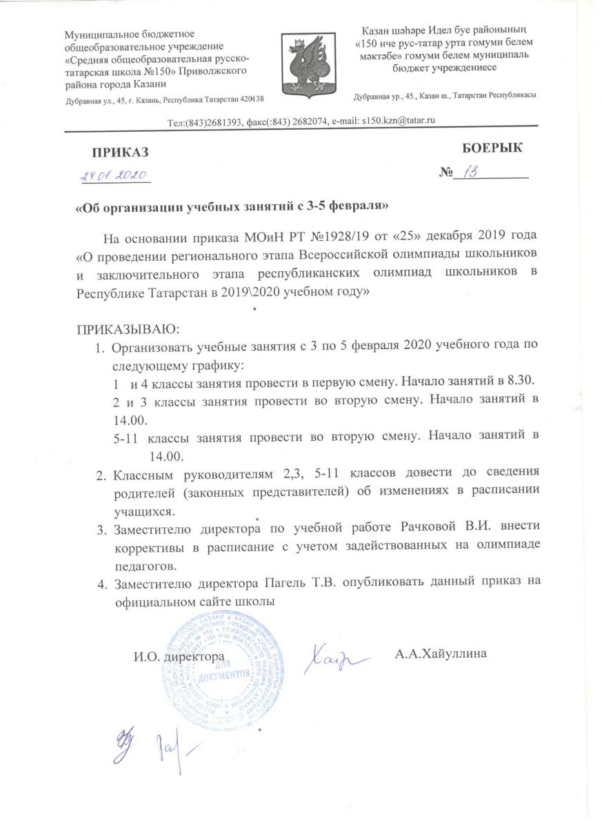 - В связи с проведением Регионального этапа Всероссийской олимпиады школьников по математике на базе МБОУ "Школа №150"- изменения в учебном процессе. 31.01.2020