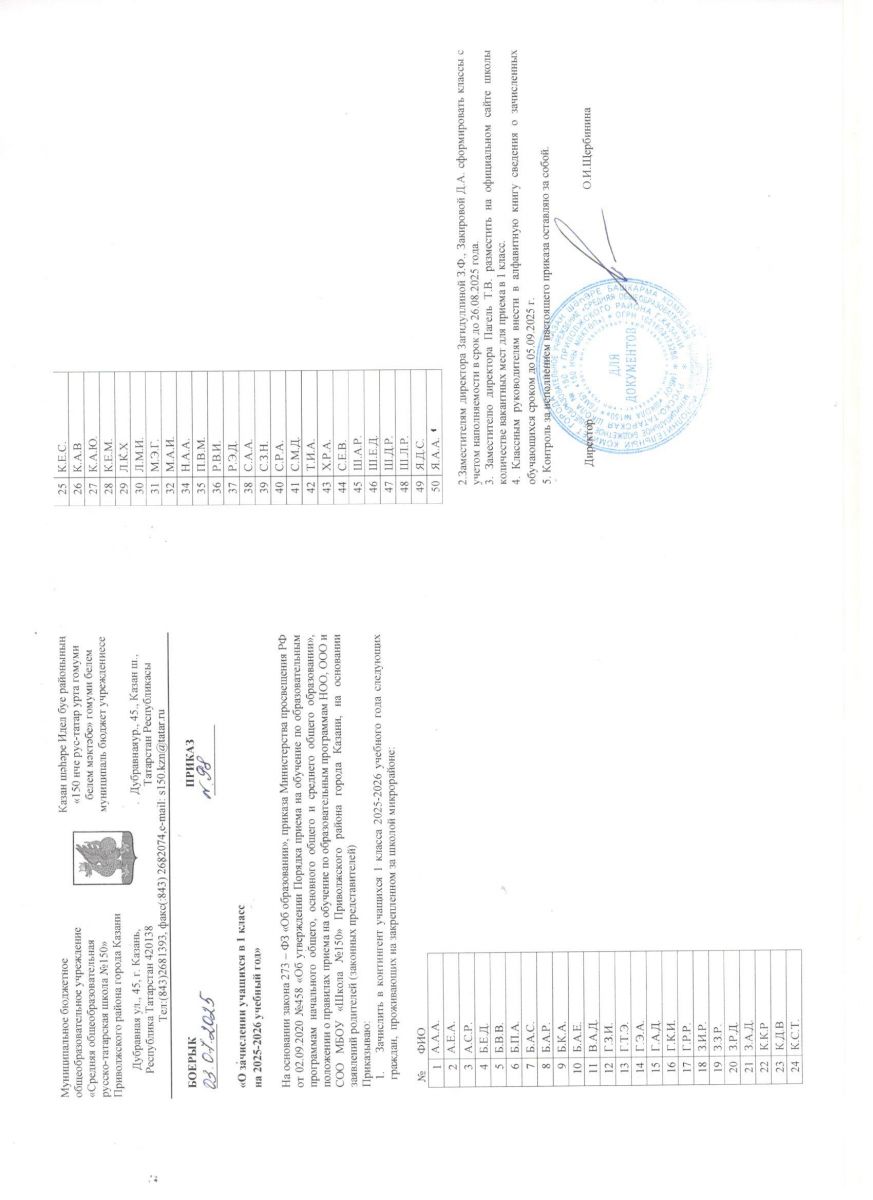 Приказ №98 от 03.07.2025 "О зачислении учащихся в школу"