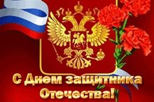 Поздравляю вас с Днем защитника Отечества – праздником мужества, благородства и чести! От всей души желаю Вам творческих успехов, счастья, благополучия и всего самого доброго! Пусть трудности, встречающиеся на Вашем пути, будут всегда легко преодолимы. Крепкого здоровья, душевного тепла и праздничного настроения!