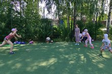 День 16-й, 21 июня. Погода продолжает нас испытывать на стойкость. Сегодня мы с удовольствием провели время на спортплощадке, играя в вышибалы, крутя обручи и прыгая через скакалку. Затем посвятили время конкурсу рисунков на асфальте в честь дня памяти и скорби - 22 июня. Закончился наш день играми в "глухой телефон" и "змейка". Настроение прекрасное среди друзей и домой совершенно не хочется.