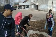 День труда. Ребята убирали листья, готовили клумбы к посадке цветов. Все были в приподнятом настроении, ребята сами определили где и какие растения будут расти на при школьном участке -