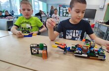 Мальчики играли, собирая свои любимые Лего. Ребятам было очень весело.... -