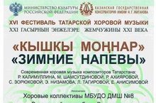 27 января в 17.00 - XVI фестиваль татарской хоровой музыки "Кышкы моңнар" ("Зимние напевы") на базе ДМШ № 8. Современная хоровая музыка композиторов Татарстана: Р.Калимуллина, М.Шамсутдиновой, Р.Ахияровой, С.Зорюковой, Э.Низамова, Л.Тагировой, Е.Анисимовой. Фотографии фестиваля: https://edu.tatar.ru/priv/page2399.htm/page3558426.htm Видео фестиваля: https://yadi.sk/i/KKZmlvUx3S2J5v