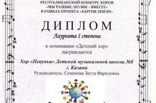 29 апреля 2016 года в 17:00 в БКЗ им.С.Сайдашева - участие хора "Мелодия", руководитель: Шигапова А.Д.; концертмейстер: Бузова Е.В.; иллюстратор: Шиверов С.М.; вокального ансамбля "Восьмушки", руководитель: Семенова З.Ф.; концертмейстер: Альметова Д.И. в городском хоровом фестивале, посвященном празднованию годовщины Победы в Великой Отечественной войне «Наследники Великой Победы. Поют дети Казани».