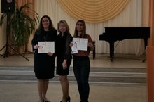 Подведены итоги творческого конкурса детей сотрудников "Мир начинается с Мамы!". Дипломы двум очаровательным мамам - Сафаргуловой З.М. и Семеновой З.Ф. вручает председатель профкома ДМШ имени Джаудата Файзи Терехина С.А.