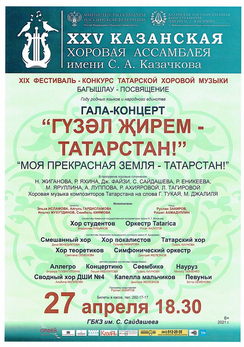27 апреля - выступление хора "Певуньи" в ГАЛА-КОНЦЕРТЕ "Гүзәл җирем - Татарстан!"/"Моя прекрасная земля -Татарстан!" в рамках XIX фестиваля-конкурса татарской хоровой музыки БАГАШЛАУ - ПОСВЯЩЕНИЕ году родных языков и народного единства. (ГБКЗ им. С.Сайдашева)
