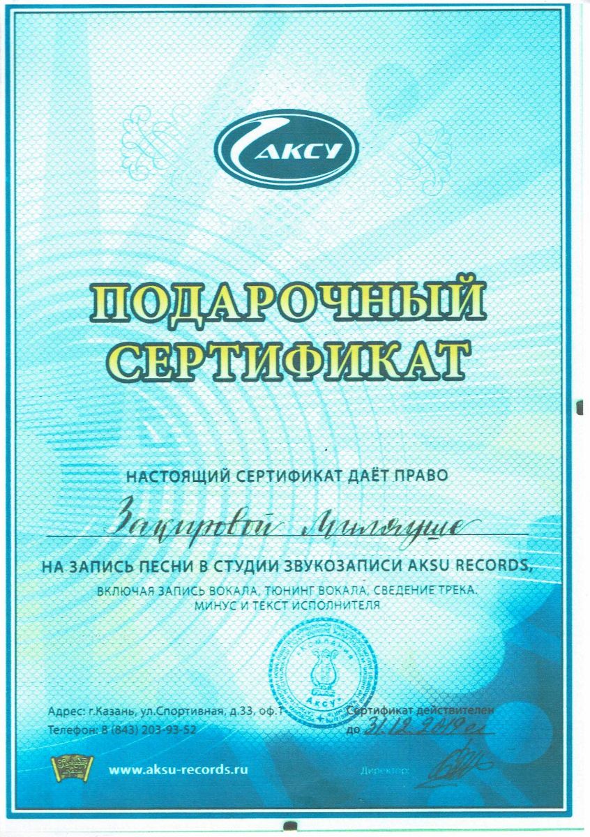 3) Подарочные сертификаты Республиканского конкурса БИКА ФЕСТ (8 шт.) - 1, 2, 3. 4, 5, 6, 7, 8
