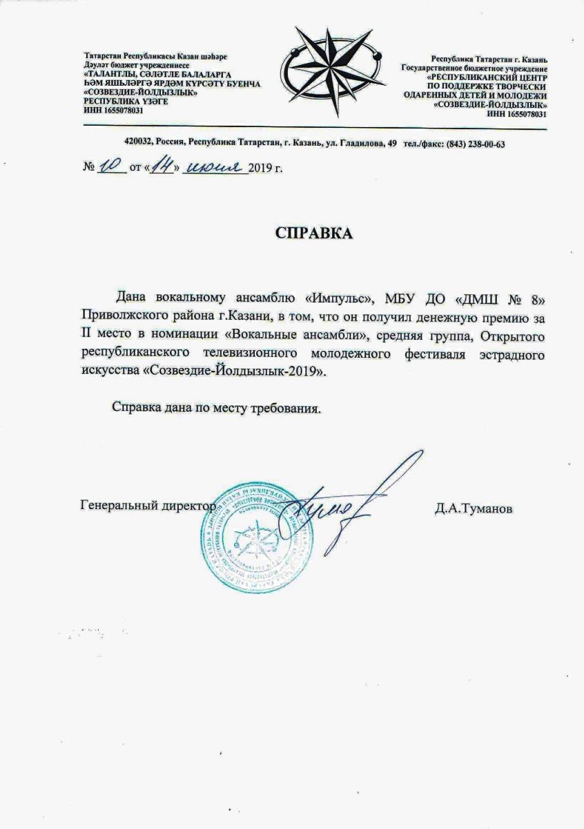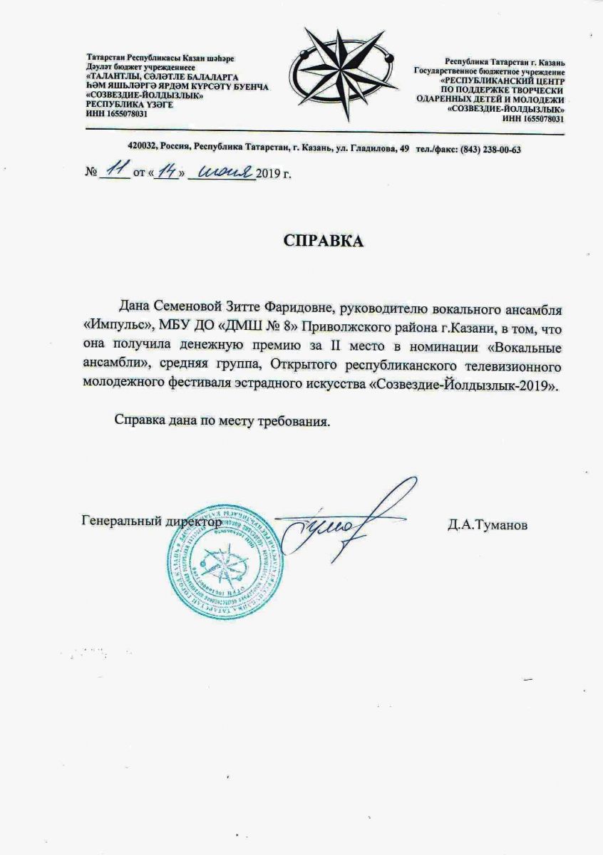 Справка (руководителю Семеновой З.Ф.); Справка (ансамблю "Импульс")