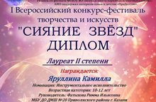 Поздравляем с успешным выступлением на конкурсе - ученицу ДМШ20 Яруллину Камиллу - класс преподавателя Фатыховой Риммы Ильясовны!