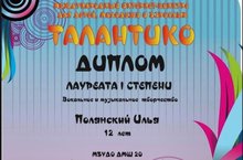 И вновь, победы Ильи Полянского в Международном конкурсе "Талантико" Илья занял 1 призовое место в номинации "Музыкальное творчество. Фортепиано" Преподаватель Иляева Снежана Фанисовна!