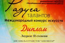 Поздравляем учащихся класса преп. Гиниятуллиной Л.М. - Ансамбль кураистов "АККОШЛАР" , Ансамбль кураистов "ЙОДЫЗЛАР" - Лауреаты II ст.
