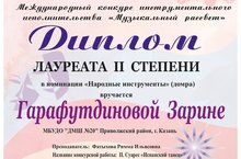 Поздравляем Гарафутдинову Зарину, преп. Фатыхова Р.И. - Лауреат II степени