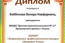 Поздравляем Байбикову Венеру Навфаровну - Лауреата I Всероссийского профессионального конкурса "Фундамент Успеха"