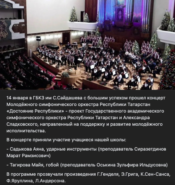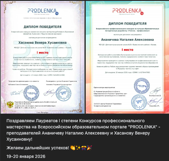 Муниципальное бюджетное учреждение дополнительного образования «Детская музыкальная школа №20» Приволжского района г.Казани - новости