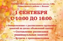 ДМШ №20 откроет свои двери для юных учащихся групп Раннего Эстетического Развития и их родителей 19 сентября с 13.00 до 16.00.