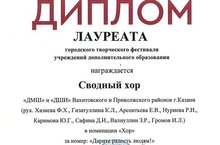 П О З Д Р А В Л Я Е М Фариду Хамитовну Хазиеву - дирижёра Сводного Хора Приволжского района города Казани - Лауреата Городского Творческого Фестиваля Учреждений дополнительного образования!!!
