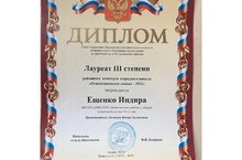Дипломом Лауреата III степени районного конкурса эстрадного вокала "Рождественское сияние - 2022" награждается Ещенко Индира. Преподаватель Хасанова Венера Хусаиновна. Поздравляем с Победой!