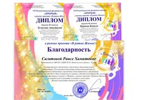 Поздравляем Тулисову Анастасию - Лауреат III степени, Нуриеву Камилю - Лауреат III степени и их преподавателя Сагитову Раису Хамитовну с Победой в VII Республиканском фестивале-конкурсе "ПРОРЫВ" в рамках проекта "В ритме жизни!"