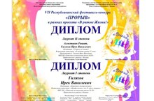 Сайфутдинов Аскер - Лауреат III степени, преподаватель Ромашова Татьяна Юрьевна; Гордеева Дарина - Дипломант I степени, преподаватель Царева Елена Юрьевна. Поздравляем с достигнутыми успехами в VII Республиканском фестивале-конкурсе "ПРОРЫВ" в рамках проекта "В ритме жизни!"
