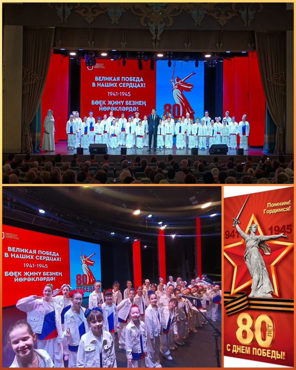 Детский эстрадный хор "Солнечная Дорога" открыл мероприятие, организованное администрацией Вахитовского и Приволжского районов в КЦ "Чулпан", посвященное 80-летию Победы в ВОВ