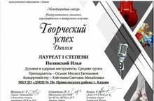 Поздравляем с победой в Международном конкурсе "Творческий успех" дуэт баянистов Давлетбакова Булата и Аглеева Ильяса - награждены Дипломом лауреатов 1 степени, преподаватель Фахразиева Гелчачак Фагимовна!