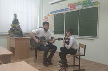 От нашей школы выступал молодой и подающий надежды преподаватель по классу гитары Туктаров Рустам Айдарович с темой открытого урока: «Развитие ритмического слуха на основе приема игры на гитаре «Фингер-стайл» с учащимся 3 класса Низамутдиновым Рамилем.