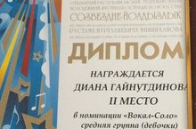 Гайнутдинова Динана - лауреат 2 степени, преподаватель Зарипова Елена Владимировна