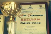 Поздравляем Приточкину Алису (руководитель - Элеонора Калашникова), ставшую Лауреатом 1 степени в Международном конкурсе-фестивале "Арт-Содружество"