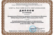 9 мая 2024 года были подведены итоги конкурса «Гражданское и патриотическое воспитание в образовании – 2024», проводимого в рамках Национальной премии «Элита Российского образования».
