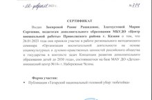 Педагогу Центра внешкольной работы Кикар Фариде Рашидовне вручили Благодарственное письмо Казанской Мэрии за участие в проекте " Хэрэкэттэ- бэрэкэт" ( " В движении- жизнь"), посвященном году национальных культур Татарстана.