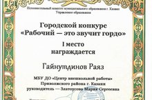 Обучающиеся студии "Жар-птица" педагога Златоустовой Марии Сергеевны приняли участие в городском конкурсе "Рабочий- это звучит гордо".