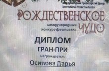 В международном конкурс-фестивале "Рождественское чудо" в номинации "Вокальное исполнительство", возрастная категория 8-10 лет - Осипова Дарья (объединение "Эстрадный вокал", педагог дополнительного образования Овсепян Ю.А.) заняла Гран-при. Поздравляем!