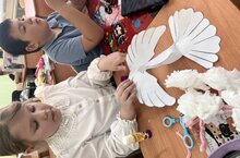 28 апреля в объединении "Город рукоделия" (руководитель Сабирова Р.Г.) в филиале Центра -школе № 97 в рамках патриотического воспитания учащиеся смастерили голубей, а также сделали с помощью аппликации открытки.