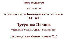 -Тутунина Полина (педагог Миннегалиева Э.Р) - I место в номинации "Новогодняя композиция".
