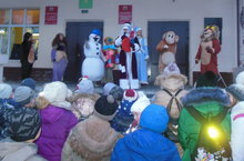 Коллектив ДПЦ «Молодость» принял участие в открытии Новогодней елки в поселке Мирный . Детям была представлена веселая интерактивная программа с участием знакомых героев – льва Алекса, обезьянки Чичичи, Медведя, клоунов. Не обошлось и без любимых всеми новогодних персонажей – Деда Мороза, Снегурочки и Снеговичка.