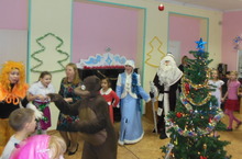 23декабря прошли новогодние представления "Приключение Маши и Медведя". Дети сначало прошли по следам зверей, были в берлоге медведя и вместе с ним покатались на катке, прошли к фее, там был мастер-класс по елочным игрушкам. Дети около елки познакомились с волком и лисой. В конце представления дети рассказывали стихи Деду Морозу и Снегурочке.
