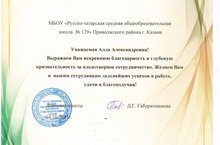 Много лет у нас сохраняются теплые партнерские отношения со школой № 129. Учащиеся с радостью посещают наши объединения, получают много новых знаний и умений. Часто проводятся различные совместные мероприятия. Мы очень счастливы работать вместе, в тесном и успешном сотрудничестве. На концерте в честь юбилея школы директор Дина Гиматдиновна вручила благодарственное письмо нашему центру, где выразила искреннюю благодарность и глубокую признательность за плодотворное сотрудничество.