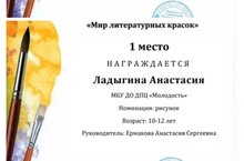 По итогам городского конкурса творческих работ "Мир литературных красок" учащиеся объединения "Палитра идей" (педагог - Ермакова А.С.) заняли призовые места: