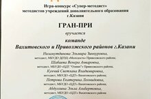21 марта в ЦВР Приволжского района прошла городская игра-конкурс методистов учреждений дополнительного образования г. Казани «Супер-методист!». В команде Вахитовского и Приволжского районов в игре приняла участие методист и руководитель структурного подразделения Низамутдинова Эльмира Зиннуровна, где команда заняла ГРАН-ПРИ. Поздравляем и желаем дальнейших успехов!