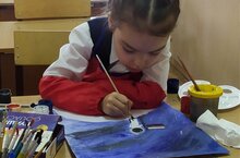 11.04 в объединении "Палитра идей" (педагог - Ермакова А.С.) прошёл урок с 1 группой, посвящённый Дню космонавтики. Ученики выполнили живописные работы гуашью и акварелью на заданную тему.